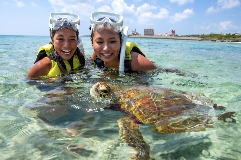 宮古島でシュノーケリング中に遭遇するウミガメは